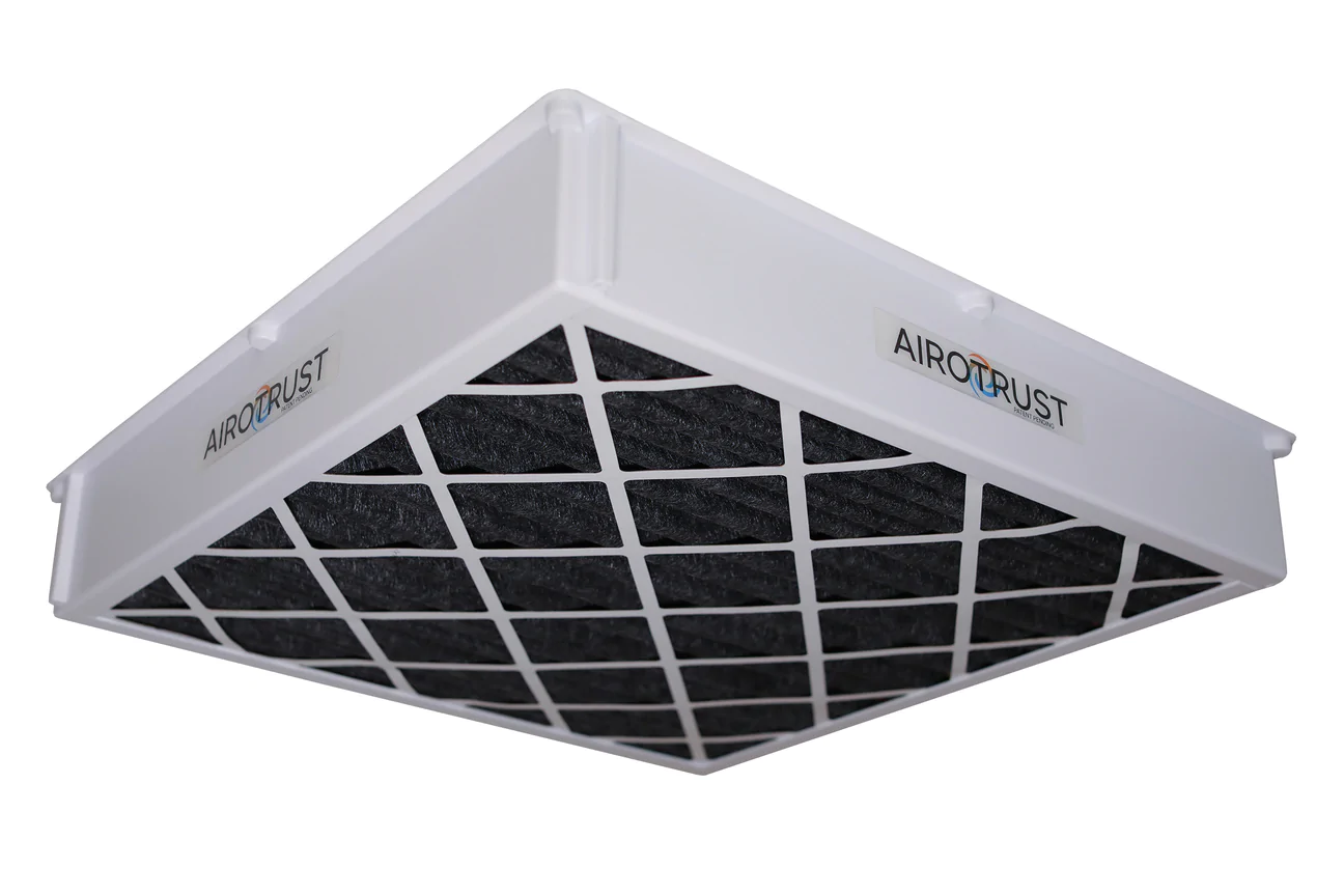 Matt and his crew designed and built the AIROTRUST, a magnetic filter housing paired with a high quality filter that snaps directly onto the ceiling tile grid, over a return or supply vent, to create an extra layer of air filtration. The AIROTRUST unit allows staff to return to work with the added peace of mind that comes with clean, safe air.