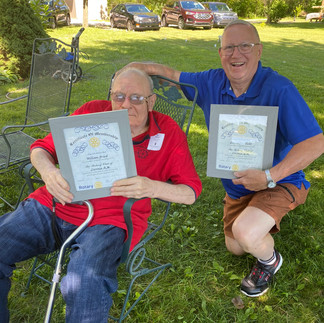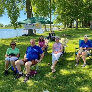 After many leisurely hours of lively conversation, we brought the business end of the meeting to order. District Governor Sincock spoke of our club’s success over the past year culminating with our club being honored with The Hedke Award for Club Administration at the District Conference this year on Mackinaw Island. She then presented Tammy with the five Sapphire Paul Harris recognition for her generous donations to Rotary international. Mike and Tammy welcomed new cub members John Clay and Susan Landmesser (who was unable to attend). We also officially welcomed "new to us" members Dave Stechholz and Bill Fried. Mike Ladwig was given a plaque to display his president’s gavel. The club board of directors was acknowledged as we all welcomed our new president, Tammy. Mike presented the award for “Rotarian of the Year” to this year’s recipient Claude Kendrick, a most worthy recipient. The meeting came to an end as we feasted on a meal of pulled pork and many tasty treats that club members shared . A fun time was had by all as the Livonia AM Rotary switched gears from men and women of work to men and women of play. The weather was perfect, sunny and warm with a gentle breeze, the comradery amongst members was amazing, and the installation ceremony paid homage to the great year our club had in 2021-22 and was a precursor to the exciting year we have to look forward to.